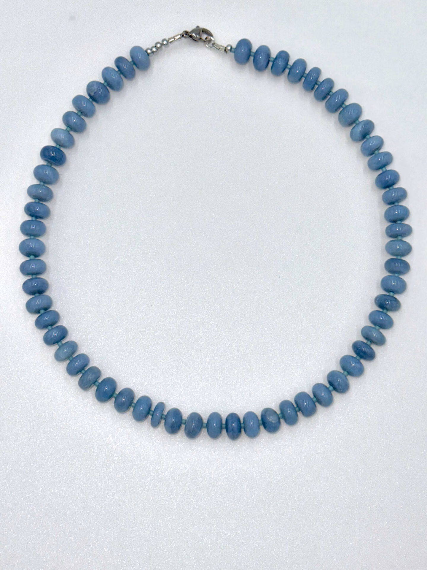 Blue opal and mini teal-colored beads combine to make a gorgeous statement on its own, or as a layering piece.